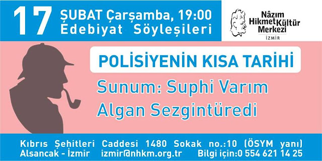 Türkiye’nin en tanınmış polisiye yazarlarından Suphi Varım ve Algan Sezgintüredi, Nazım Hikmet Kültür Merkezi’nin düzenlediği “Polisiyenin Kısa Tarihi” söyleşisinde okurlarla bir araya gelecek.